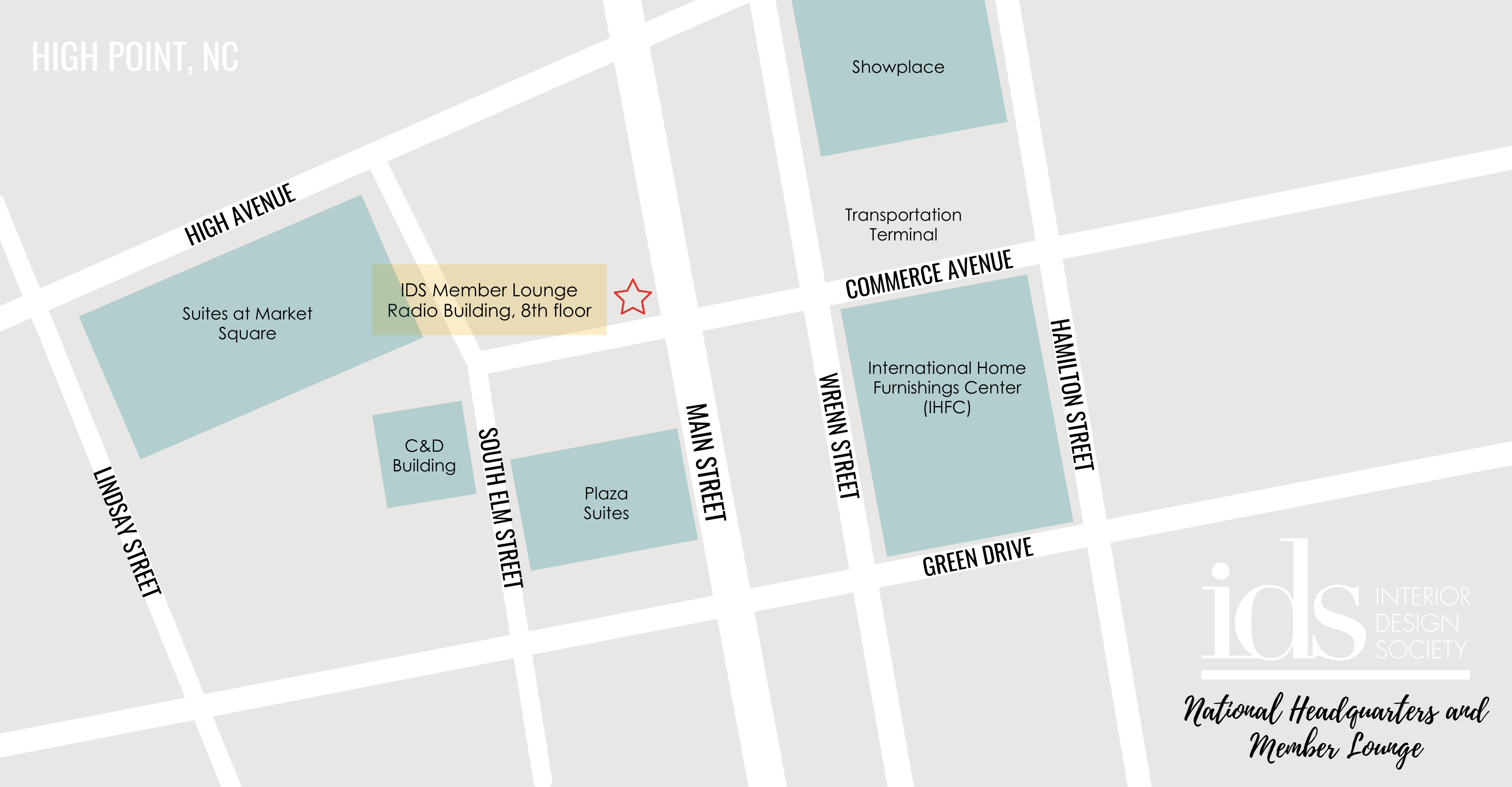 The IDS Headquarters is located in the Radio Building in downtown High Point. Open daily during High Point Market, stop by any time to drop your luggage, grab a snack and a beverage, charge your phone, and connect with IDS members. All complimentary for IDS members.